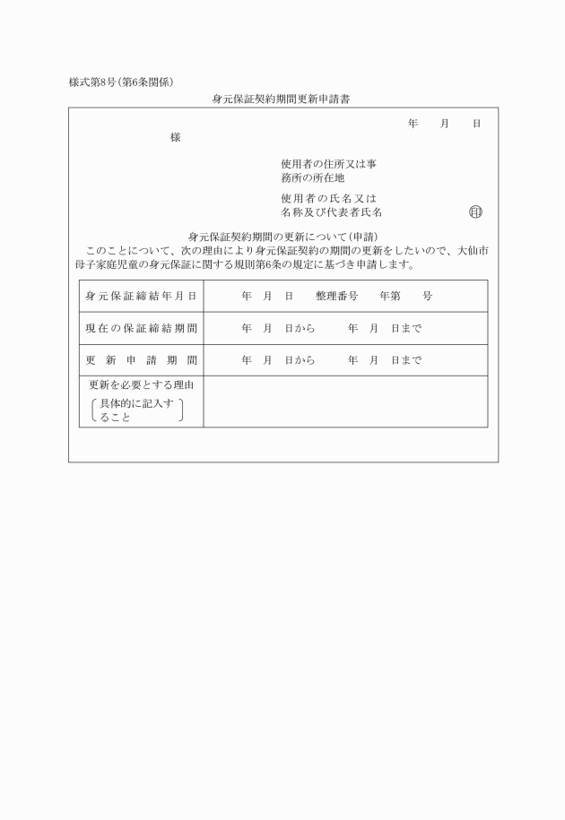 ○大仙市母子家庭児童の身元保証に関する規則